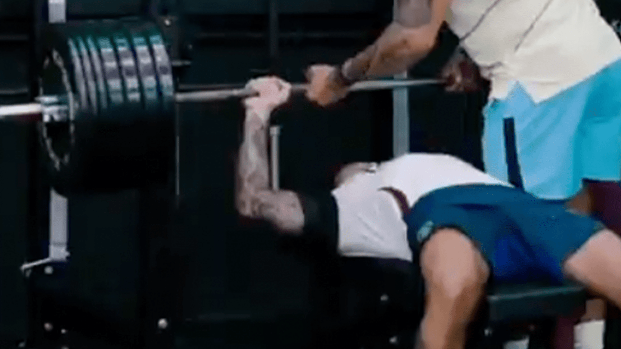 一段训练视频显示,留长头发的利马卧推举起了130KG的杠铃,密密麻麻的铁块令人印象深刻。根据健身领域的说法,130公斤的卧推重量,达到了健美运动员的水平,需要长期专业训练的人才能达到。