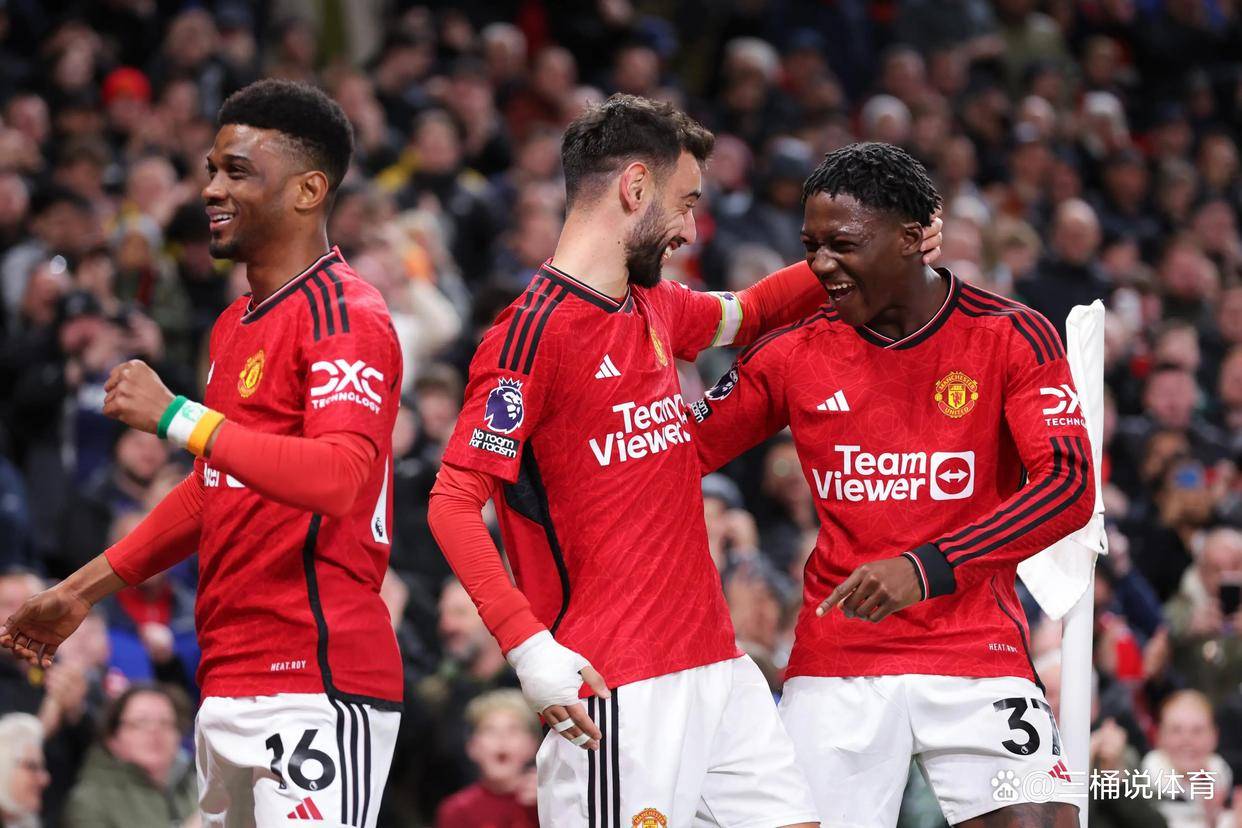 曼联这一晚简直踢疯了。开场不到5分钟,B费一脚直塞让加纳乔破门,可惜越位被吹。可是该来的还是来了,第30分钟,马奎尔突然化身“带刀侍卫”,一脚传中助攻卡塞米罗头球破门!2分钟后更离谱:霍伊伦在禁区被对手放倒,裁判直接红牌+点球套餐!B费点射命中,曼联2-0。
