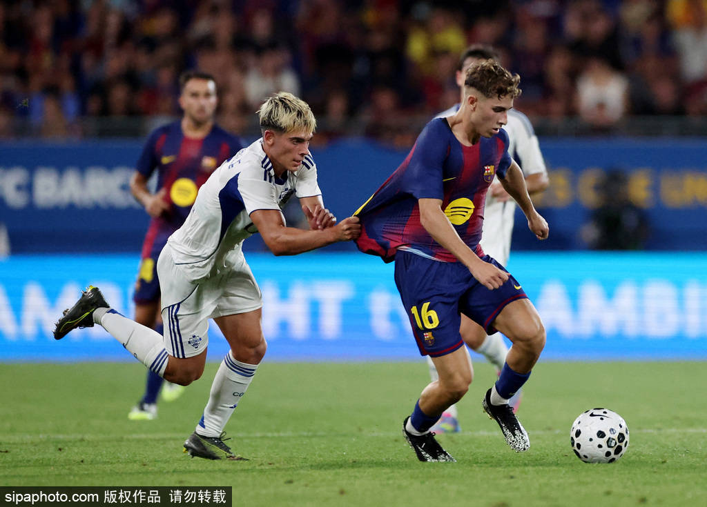 这个徽章的设计融合了西甲标志与象征冠军的红色“X”图案,标注了夺冠赛季(2024-2025),金色数字在白色背景上显得格外醒目。这样的设计无疑让巴萨的球迷感到自豪,同时也为球队的形象增添了不少光彩。值得注意的是,由于撞色问题,巴萨在比赛中无法穿着新赛季的球衣,因此选择了旧款球衣搭配崭新的专属徽章,这种旧与新的有趣对比,成为了赛季初期的一大亮点。